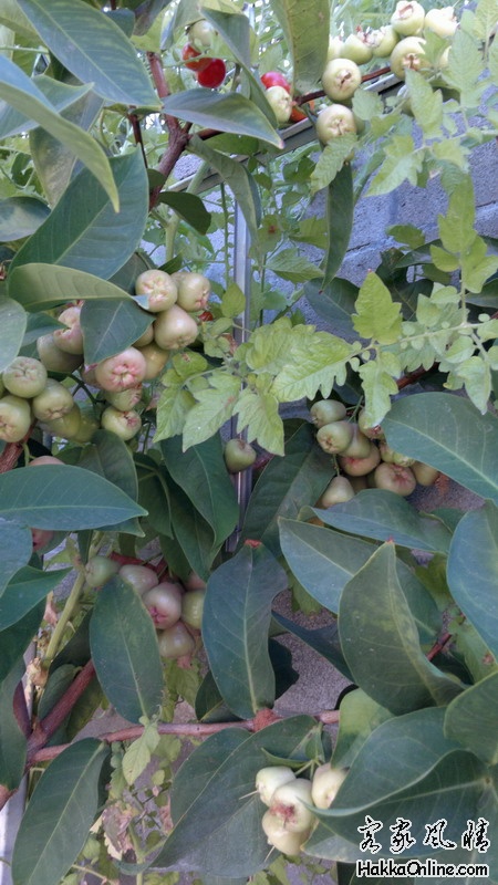 莲雾快成熟了(红色的是西红柿)